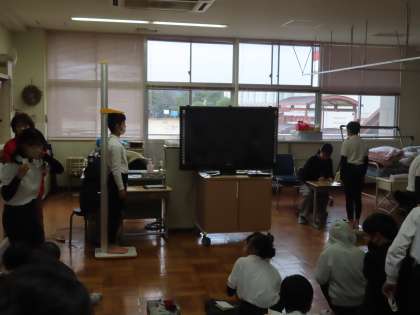 2時限目は5年生が、身体測定の後に養護教諭から話を聞きました。