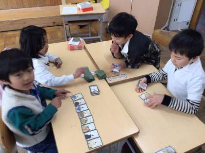 生活科でぼうずめくりをしました。ぼうずが出ると,「いやーーー!」と叫んでいました。仲良くわいわい楽しみました。