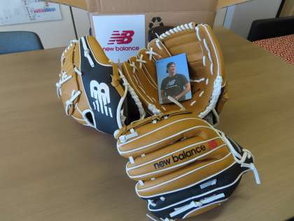 メディアで報道されていた、メジャーリーガーの大谷翔平選手から寄贈されたグローブが届きました。左右(大)一つずつと右(小)一つの計3つです。