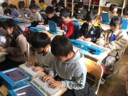ICT支援員の先生にタイピングの練習アプリ紹介していただき、取り組みました。速さよりホームポジションを正確に覚えることが大切だと教えていただきました。