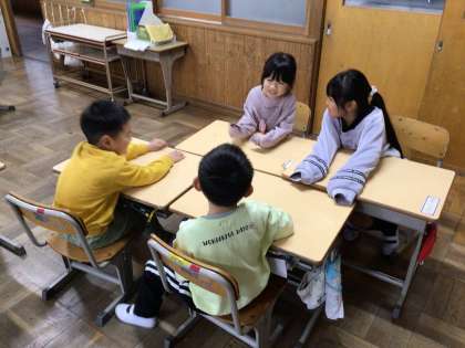 1日入学 昔遊びの話し合い 公開日 2024/01/22 更新日 2024/01/22 第1学年の様子 1日入学で年長さんと遊ぶ昔遊びを何にするか班ごとに話し合いました。 「ひらがなまだ読めないから」「これならルール簡単だから」など、年長さんのことを考える姿が見られました。 1年