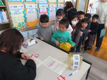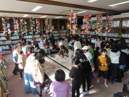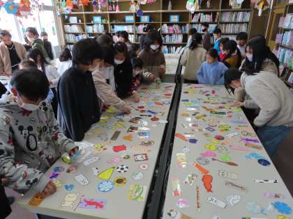 1/23 しおり渡し 公開日 2024/01/23 更新日 2024/01/23 お知らせ 午前業間に図書室で、図書ボランティアの皆さんがしおりを渡してくれました。子どもたちは、読んだ本の冊数分に応じたしおりを迷いながら楽しそうに選んでいました。 今回もたくさんの種類のしおりを準備していただきありがとうございました。