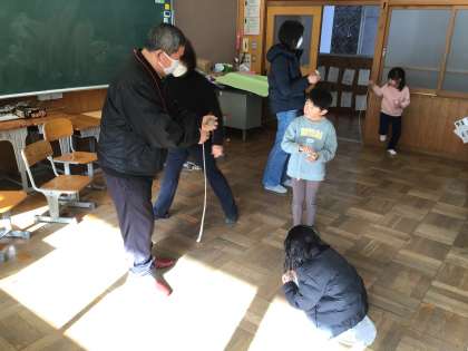 昔遊び体験会 こま 公開日 2024/01/30 更新日 2024/01/30 第1学年の様子 25日(木)昔遊び体験会(こま)の様子です。最初は紐を巻き付けることに苦戦しながらも,徐々に慣れ,何度もこまを回していました。手に乗せたり,綱渡させたり,難易度の高い技にも挑戦していました。 1年