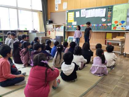 1日入学 その1 公開日 2024/02/01 更新日 2024/02/01 第1学年の様子 リハーサルをして,いよいよ1日入学本番を迎えました。司会から全て自分んたちで進行しました。 ペアの年長さんの名前を呼び,学校案内に出発です。 1年