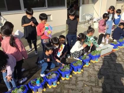 終わりの時間に育てている花を紹介しました。来年どうやって水やりするのかも教えていました。