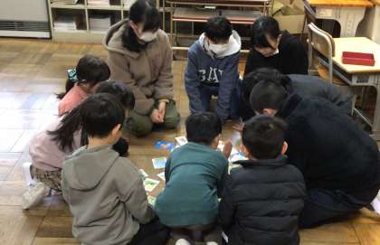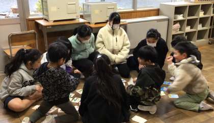 5年生とかるたをしました。1年生だけでかるたをするときよりも盛り上がっていました。