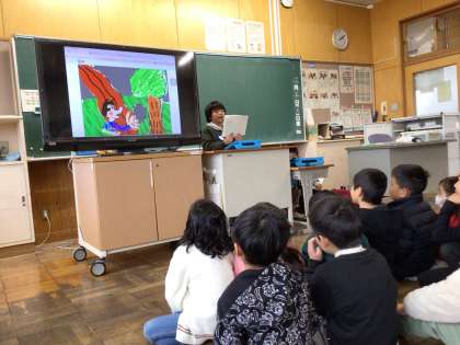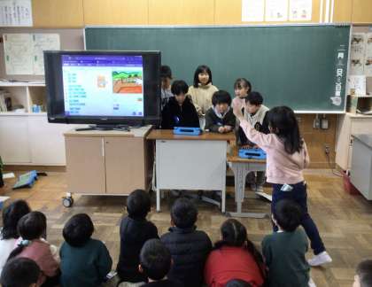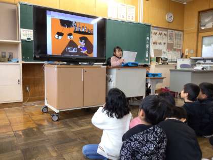 1年生と2年生を招待して、プログラミング紙芝居を発表しました。お話が伝わったでしょうか?次は、授業参観でおうちの方に見ていただく予定です。