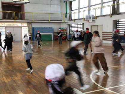 2/6 各学年との交流(1年生と遊ぼう) 公開日 2024/02/08 更新日 2024/02/08 第6学年の様子 6年生の思い出づくりの一つとして、各学年と遊ぶ意見が出ました。1年とは、鬼ごっこをして楽しみました。 6年