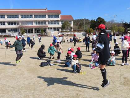 2/8 なわとび大会 公開日 2024/02/08 更新日 2024/02/08 お知らせ 体育委員会企画の「なわとび大会」を給食後に行いました。目的は、練習期間を通して寒い中でも外で運動する機会にする。なわとび技術の向上を図る。異学年交流の機会にするです。 スマイル班ごとに分かれて、低・中・高学年の順番でそれぞれの技を行いました。