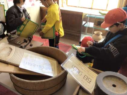 社会科「市のうつりかわり」の学習で、昔の道具を調べるために藤岡民族資料館へ見学に行きました。たくさんの道具が展示されており、どのように使うのか、資料館の職員の方に質問しました。また、昔の家も見学し、今の暮らしが便利なことを実感しました。明日は、3年2組が見学に出掛けます。