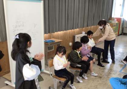 3/1 2月の誕生日会 公開日 2024/03/05 更新日 2024/03/05 第3学年の様子 2月の誕生日会を行いました。誕生日会社の子たちが考えた「フルーツバスケット」「○×クイズ」や、お笑い会社の子たちによるショートコントで楽しみました。
