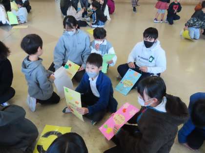 1年生が一緒に遊んだ6年生を招待して、感謝の会を行いました。