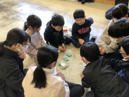 6年生へ ありがとうのお礼の会 公開日 2024/03/11 更新日 2024/03/11 第1学年の様子 6年生を招待して、1年間の感謝の気持ちを込めてお礼の会をしました。 一緒にじゃんけん列車で遊んだ後、スマイル班に分かれて昔遊びを教えてあげました。 1年
