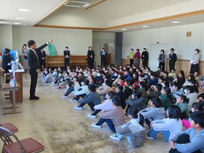 3/22 修了式 公開日 2024/03/22 更新日 2024/03/22 お知らせ 6年生が卒業し、飯野小学校の児童数も200名を切りました。そこで修了式を体育館ではなく、多目的ホールで行いました。底冷えすることなく丁度よい納まり感で、修了式を行うことができました。 どの学年も大きな声で返事ができ、校長先生や生活担当の先生の話をしっかり聞いていました。学年が上がることへの気持ちが伝わってきました。