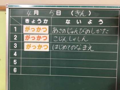 今日の1年生の時間割です。
