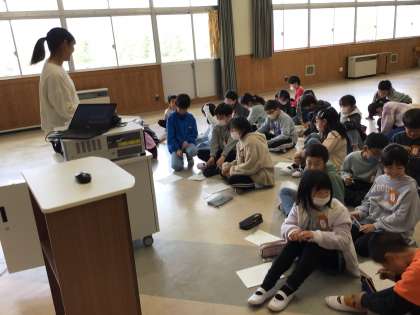 1時間目にドッチボールをしました。2時間目には学年集会を行いました。学年の約束事を確認した後に、金山先生が楽しい自己紹介とビンゴゲームをしました。