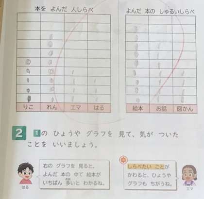 「1の ひょうや グラフを 見て、 気が ついたことを いいましょう。」