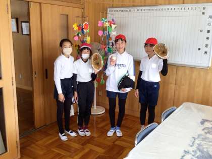 業間、5年生4人が校長室に大谷グローブを借りにきました。