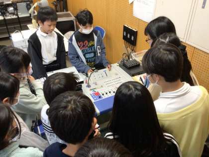 2枚目 放送委員会 放送卓の操作方法を、経験者が新しい委員に説明していました。