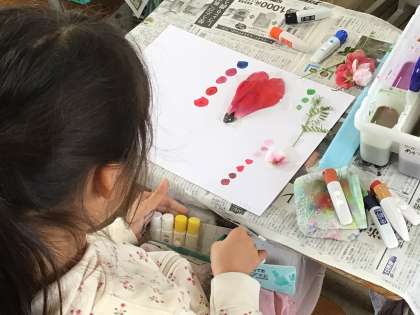画用紙にお気に入りの花や葉を貼って、微妙な色の変化を表現しました。