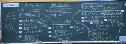 4年生の道徳の授業では、「ちこく」というお話から、互いに分かり合うためにどうしたらよいかについて考えました。大事な試合に遅刻してきた仲間に、事情も聞かずに怒ってしまったこう太の気持ちを考え、怒ってしまう気持ちもあるが、冷静になり、事情を聞いてあげればよかったと考えることができました。