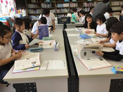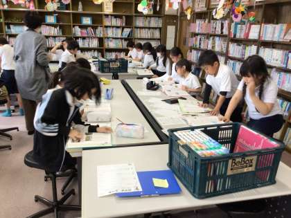 百科事典を使ってクイズに挑戦しよう 公開日 2024/04/18 更新日 2024/04/18 第3学年の様子 百科事典「ポプラディア」の使い方を学習しました。あいうえお表を見ながら、クイズの中にあるキーワードを探しました。一人一人クイズの内容は違うため、眉間にしわを寄せながら読み込んでいました。 3年