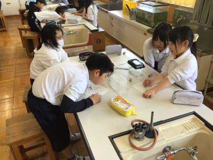 理科 スケッチしよう 公開日 2024/04/18 更新日 2024/04/18 第3学年の様子 10分間ひたすら ありを捕まえた後、ありを観察してスケッチしました。ルーペも使いながら、じっくり観察していました。ありの足は6本?8本?体はいくつに分かれている?と議論になりました。これからたくさん勉強していきましょう! 3年