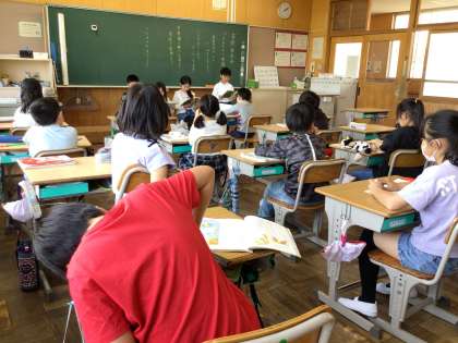 「登場人物の気持ちを想像して音読で表現しよう」というめあてのもと、音読発表会をしました。登場人物になりきって大きな声で読んだり、登場人物ごとに声色を変えて読んだりと楽しそうに音読をしていました。
