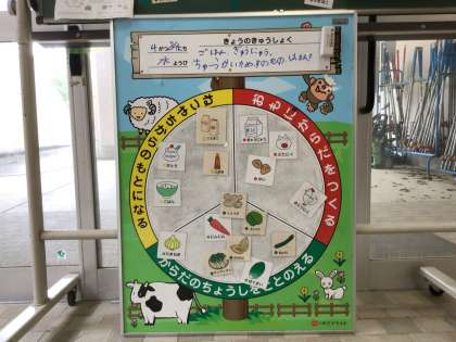 昇降口奥に栄養黒板があります。