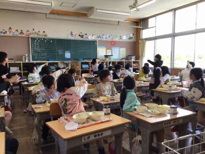給食中に幼虫が脱走しました。