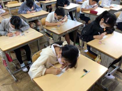 朝一番で漢字小テストです。