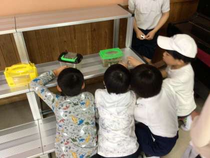 ふじっ子ホールで生き物観察です。