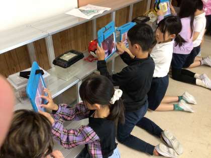 じっくり眺める子、タブレットで写真を撮る子といろいろです。