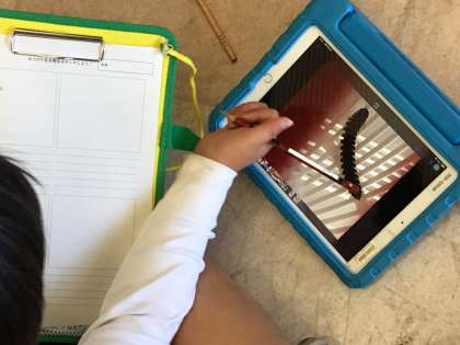 5/14 4年生 環境学習 その6 公開日 2024/05/14 更新日 2024/05/14 活動の記録(その他) 観察記録をまとめています。 1枚目 トンボの羽や脚をよく観察しています。 2枚目 タブレットで撮った写真を見て、脚の数を数えています。 校長