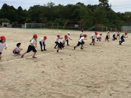 前の子はボールが見えたら走り出します。