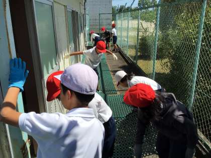 5/17 5年生 プール掃除 その1 公開日 2024/05/17 更新日 2024/05/17 活動の記録(その他) 5年生がプールサイドや更衣室を掃除してくれました。 落ち葉がたくさん溜まっていて、かき集めるのに苦労していました。 チームワーク良く作業に取り組んでいました。 【めざす子ども像 な:なかよく助け合う子】 校長