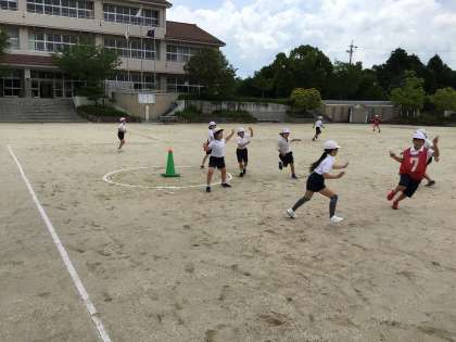 3年生が体育の授業で鍛えた「スポーツ鬼ごっこ」で4年生に勝負を挑みました。