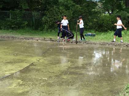 掃除の時間に代表児童が田んぼの管理に来ていました。