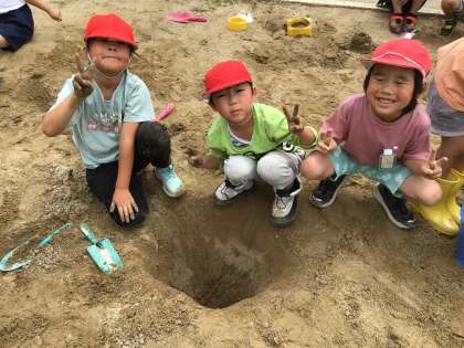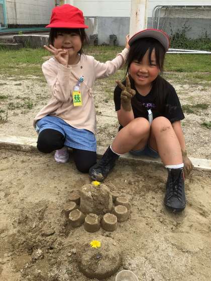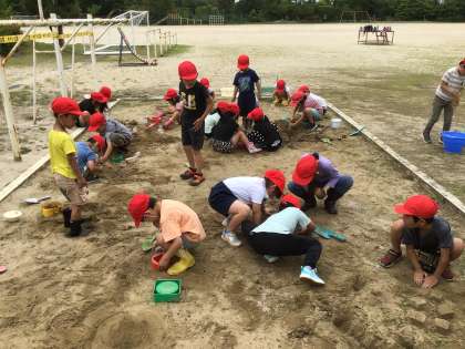 5/23 図工「すなやつちとなかよし」(1年) 公開日 2024/05/23 更新日 2024/05/23 第1学年の様子 砂場で造形活動をしました。大きな穴を掘る子、ケーキを作る子、動物の顔を作る子…思い思いに楽しみながら作成しました。