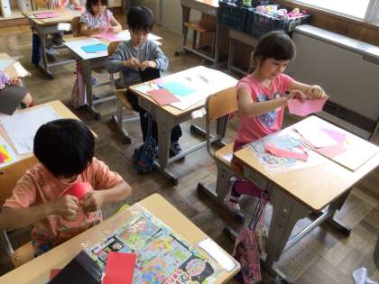 5/30 図工「やぶいたかたちからみつけたよ」(1年)