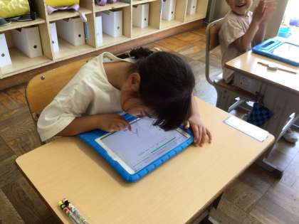 今日は初めてキュビナを使いました。テストの前にひらがなの復習をしました。
