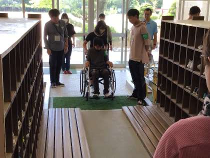 昇降口も狭くて段差が多く、車いすで移動するのは大変でした。