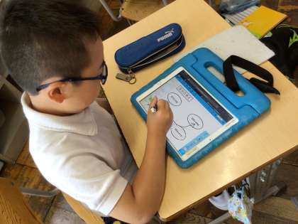 数字の合計を求める時に、いくつかのまとまりに分けることで「およその数」をすばやく把握する方法を考えました。発表ノートを使って自分の考え方をまとめ、班の人と共有しました。