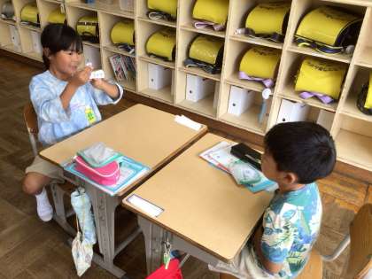 たし算カードを使って楽しくゲームをしながらたし算の習得を図ります。今日は「こたえはいくつ」「おおきさくらべ」をしました。