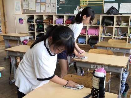 午後業間は、外で遊んだり教室で本を読んだりとそれぞれ自由にすごしています。4-2教室掃除の子が、掃除の時間に上雑巾がやれていなかったのをみて午後業間になっても掃除を続けてくれていました。そしたら他の掃除場所から帰ってきた子も一緒に手伝ってくれていました。自分が自由につかえる時間を誰かのためにつかおうとする姿に感動しました。