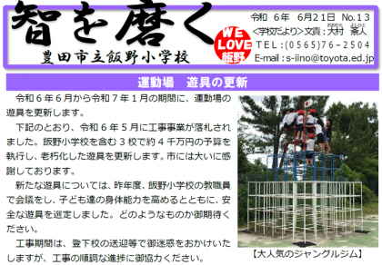 「学校だより 智を磨く No.13」を発行しました。