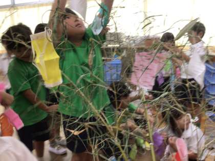 七夕の由来や意味を学習した後、七夕飾りを作りました。今日は完成した飾りを笹に飾りました。来週、短冊に願い事を書いて飾ります。