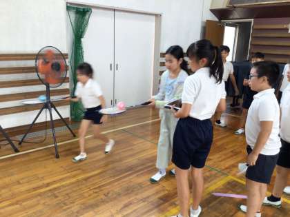 体育委員会が企画してくれた障害物競走に4年生が参加しました。5・6年生の指示をちゃんと聞いて楽しく運動することができました。