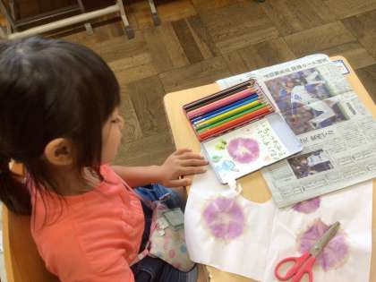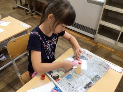 7/11 暑中お見舞いの葉書作り(1年) 公開日 2024/07/20 更新日 2024/07/20 第1学年の様子 先日作ったあさがおのこすり染めを使って、暑中お見舞いの葉書を作りました。夏らしい素敵な葉書ができました。ぜひ大切な人に送ってくださいね。