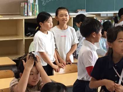 黒板のメッセージを友達と一緒に嬉しそうに眺めている子がいました。